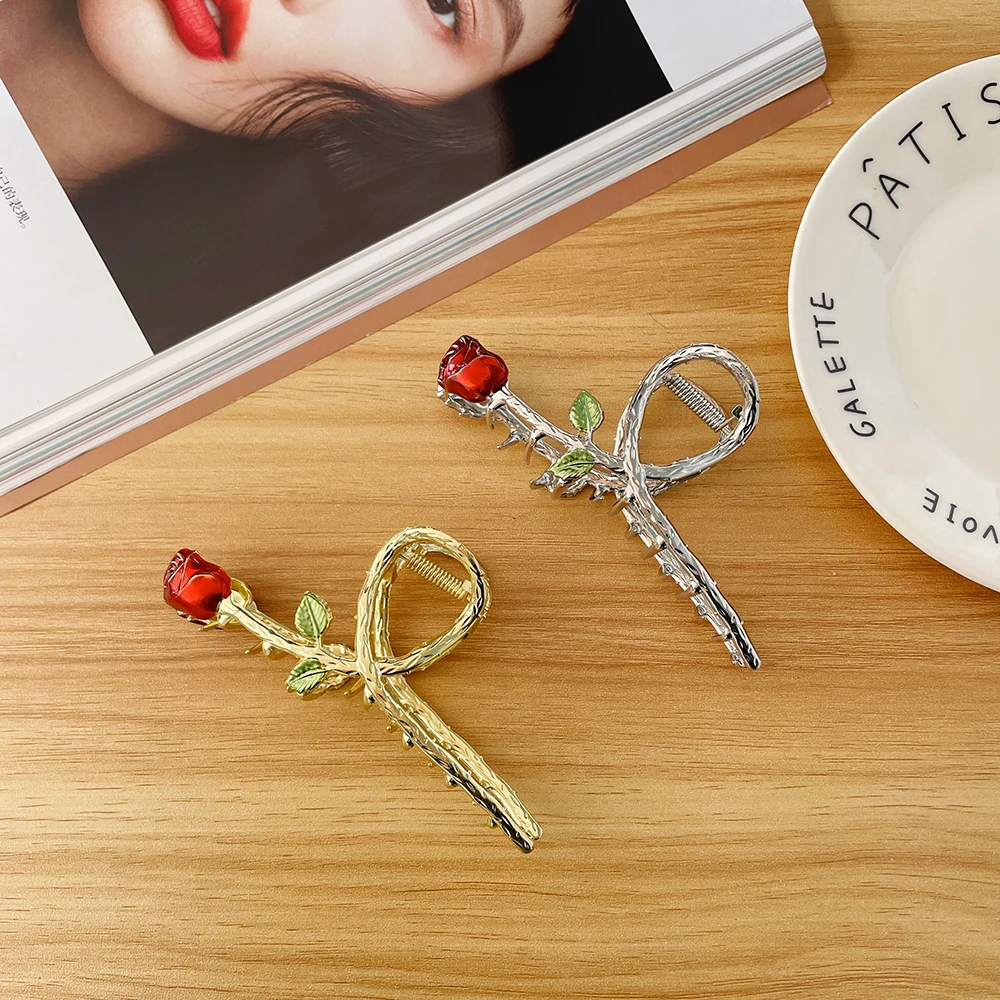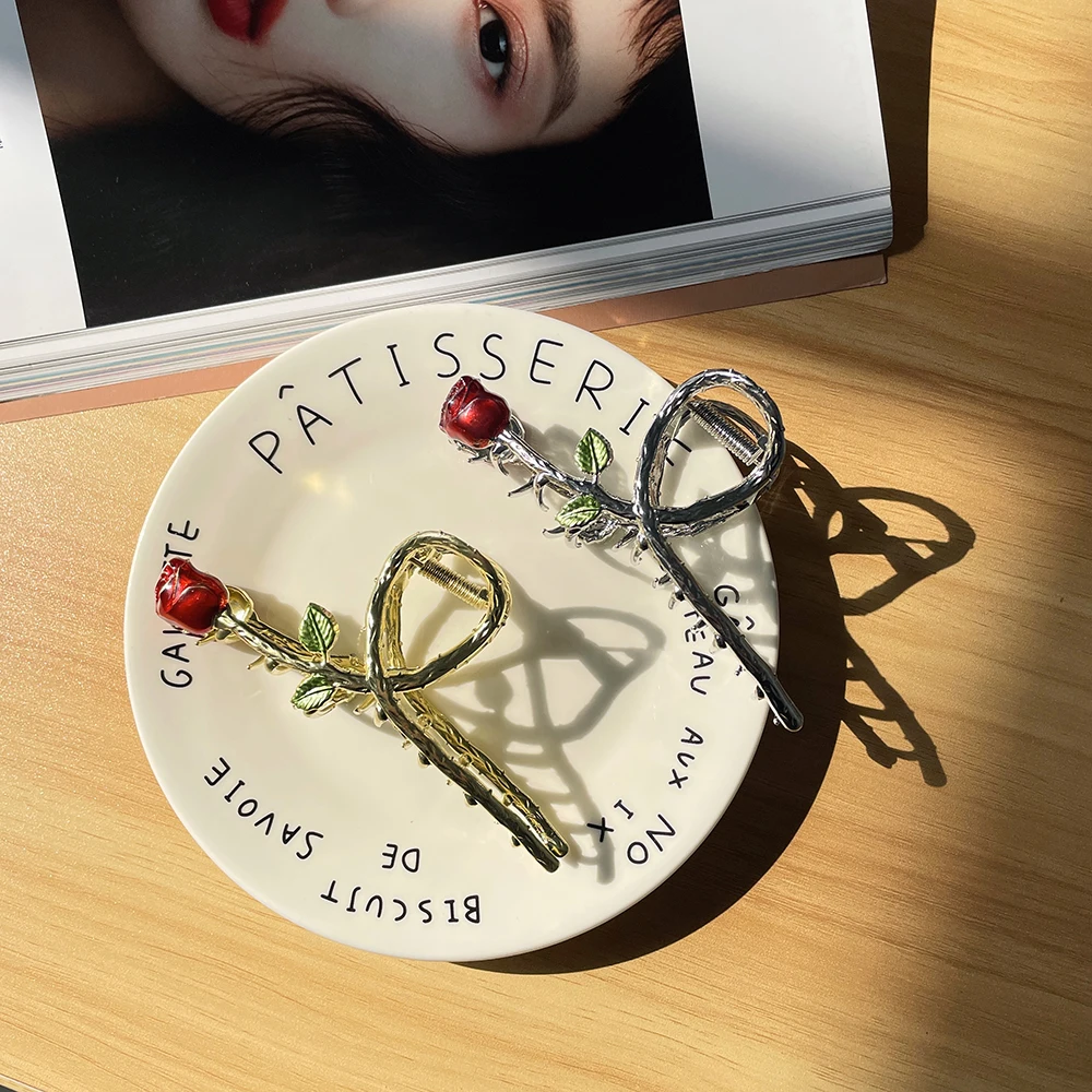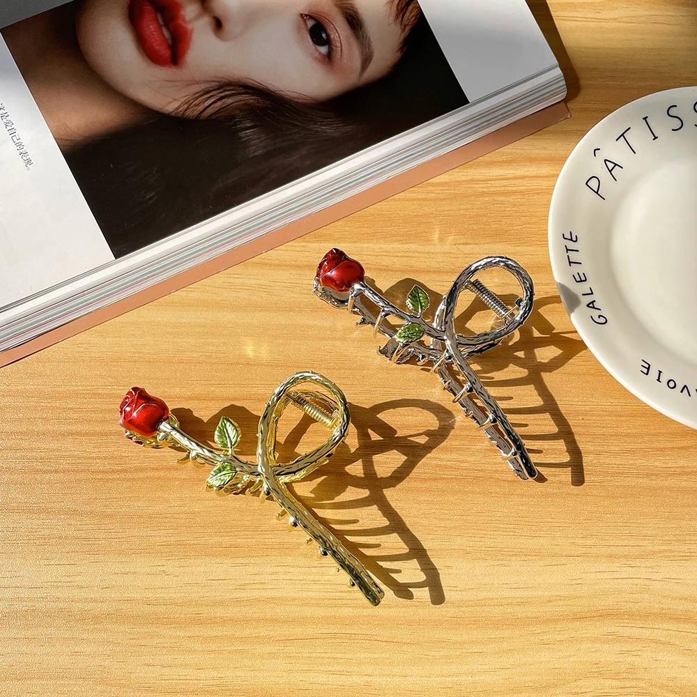 A hair accessory inspired by Disney’s Beauty and the Beast novel. It has a unique design that is reminiscent of the enchanted rose from the movie. The claw is decorated with delicate petals and a stem.