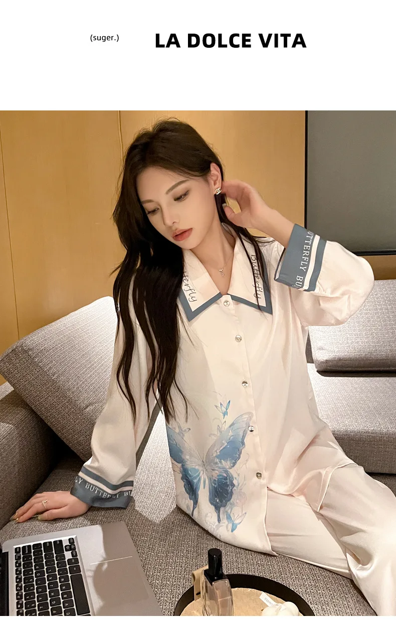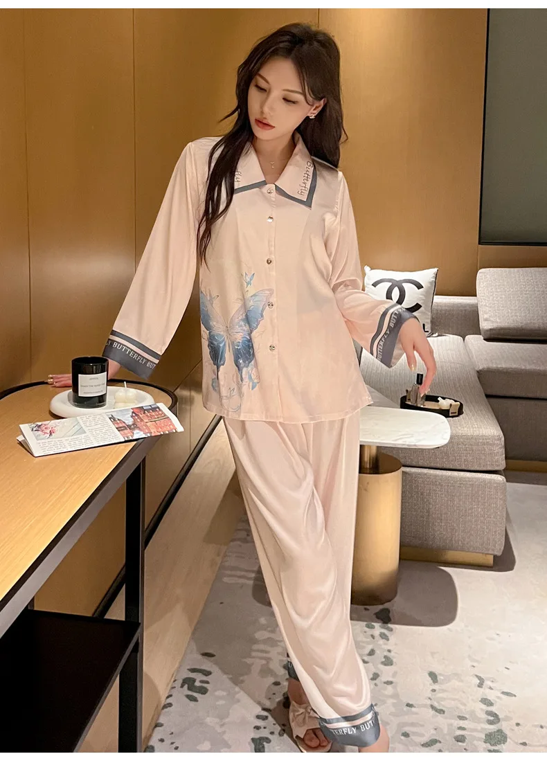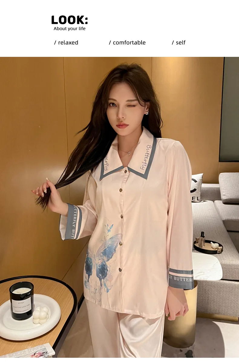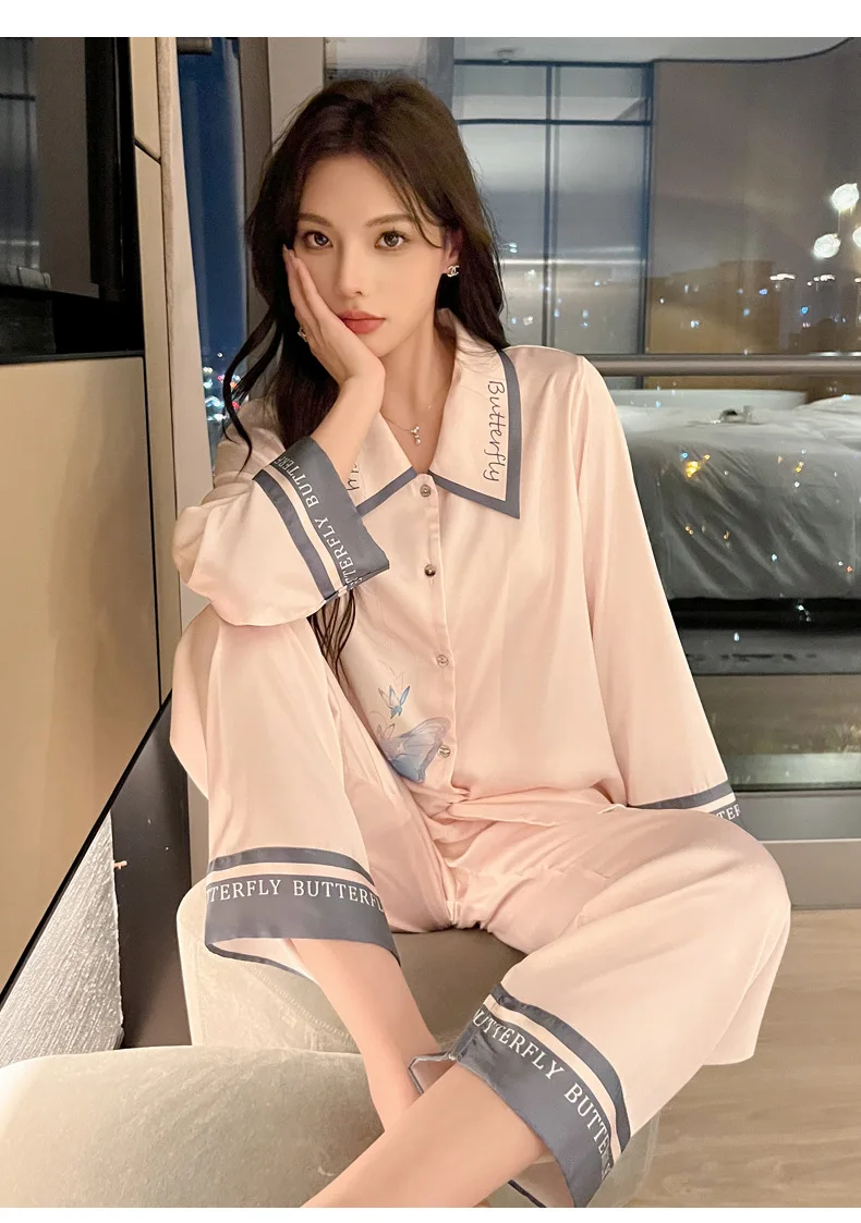 The silky smooth texture and elegant butterfly motif make this pajama a standout addition to any sleepwear wardrobe.