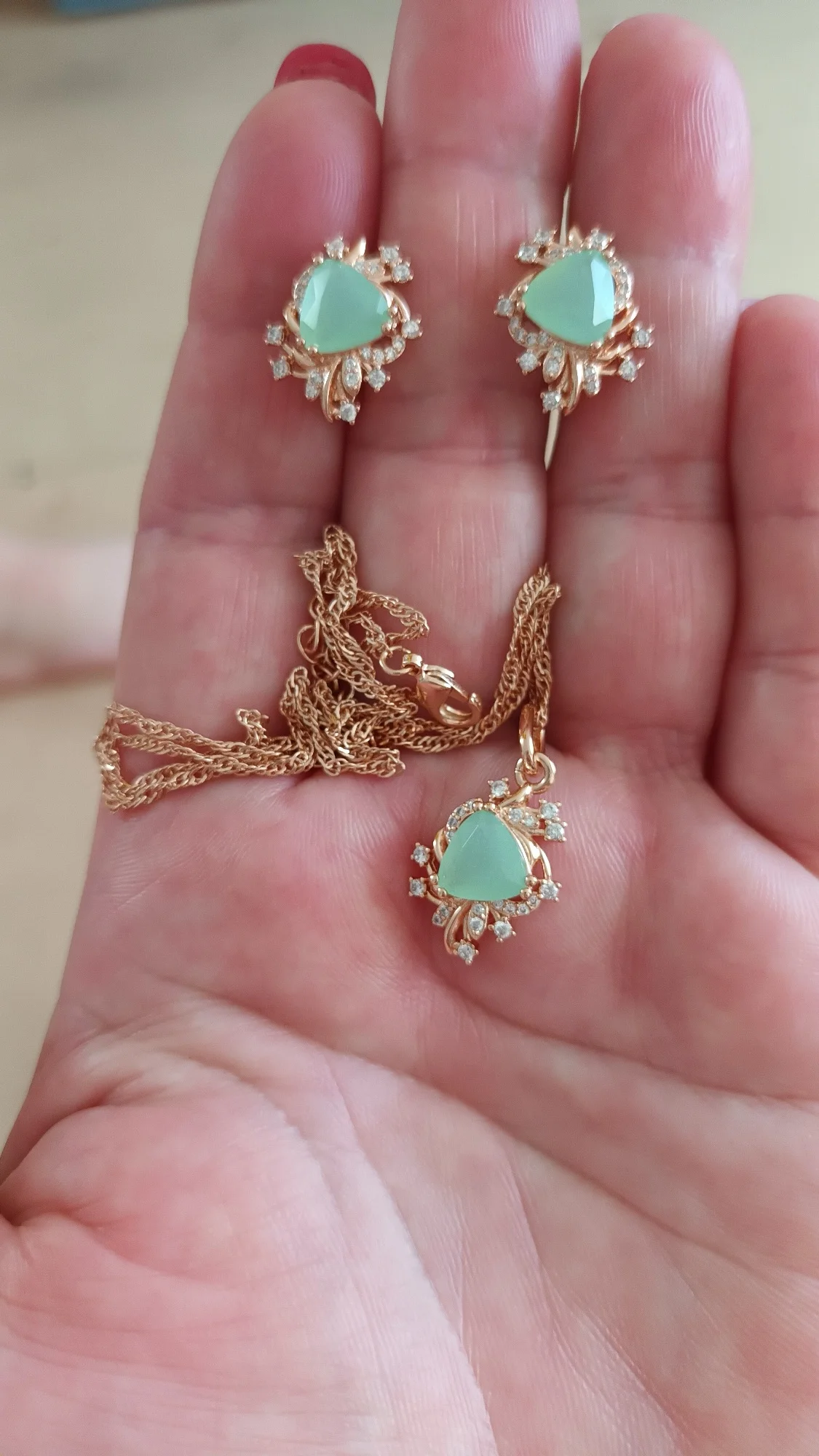 Arrived quickly. Very beautiful, no different from gold. I bought the same earrings, it turned out to be a very beautiful set. I recommend the shop sleepy girlz.