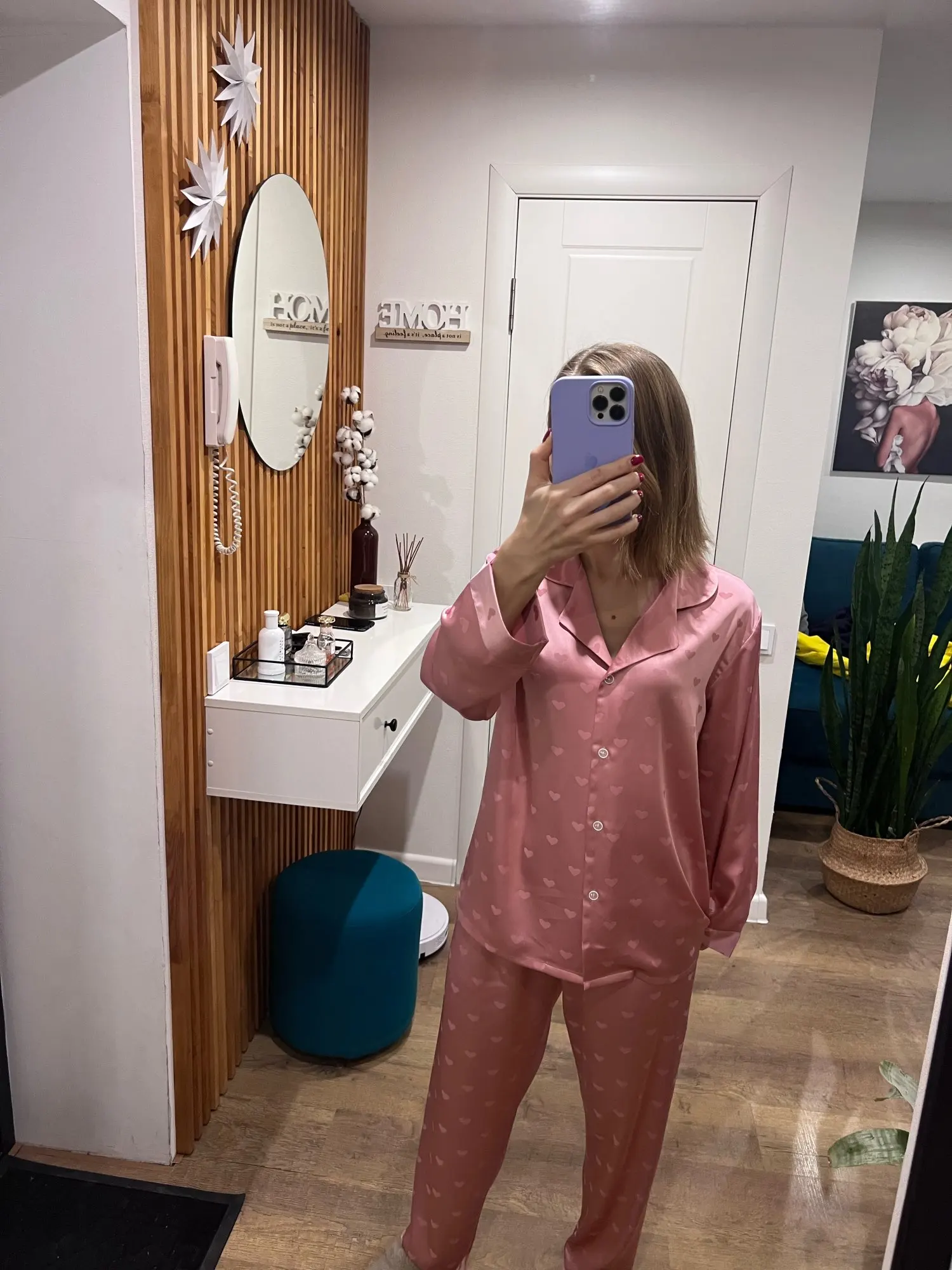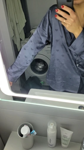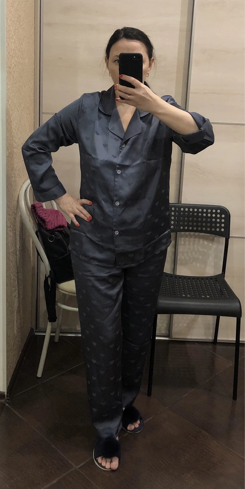 this is now my favorite pajamas. I was afraid that the synthetics would be untouched to the body, but it turned out vice versa, it’s not hot and not cold, pleasant to the body and beautiful blue-gray color color Everyone who saw her live she really liked. And the ironed it is certainly chic simply) on my m took XL, came up perfectly.
