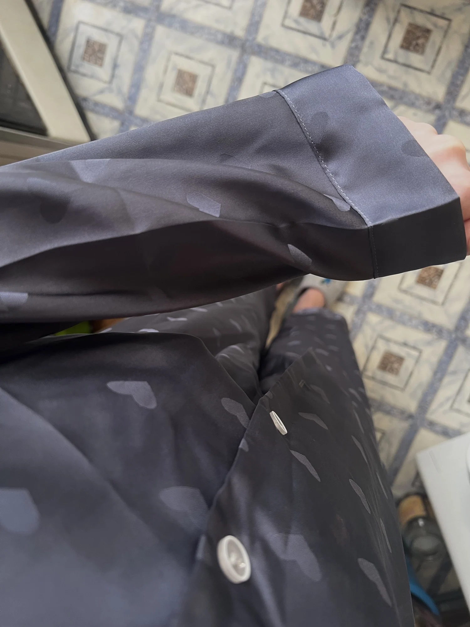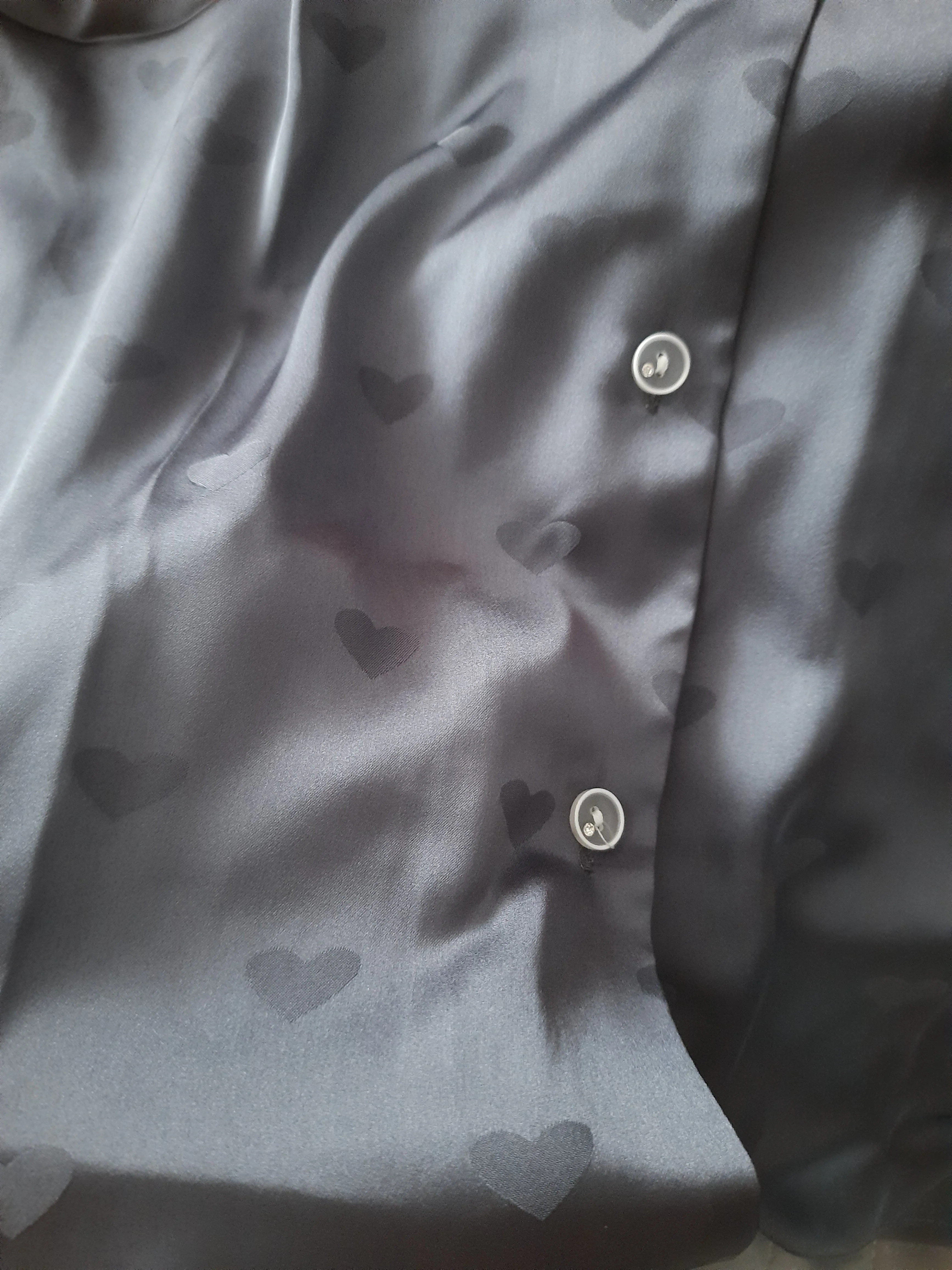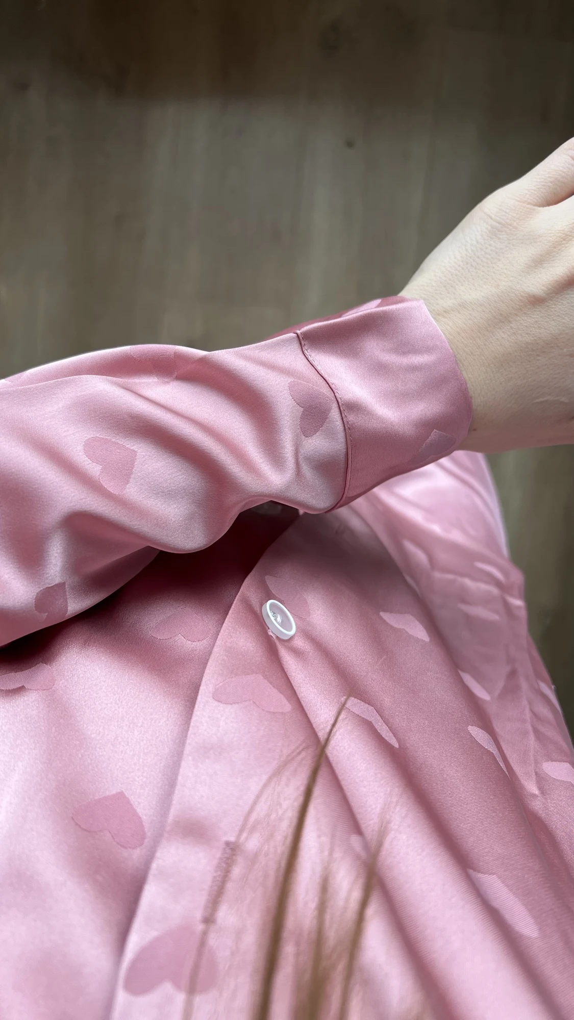 The term “Love” refers to the romantic theme in the design of the pajama – the lovely heart pattern on the satin fabric.