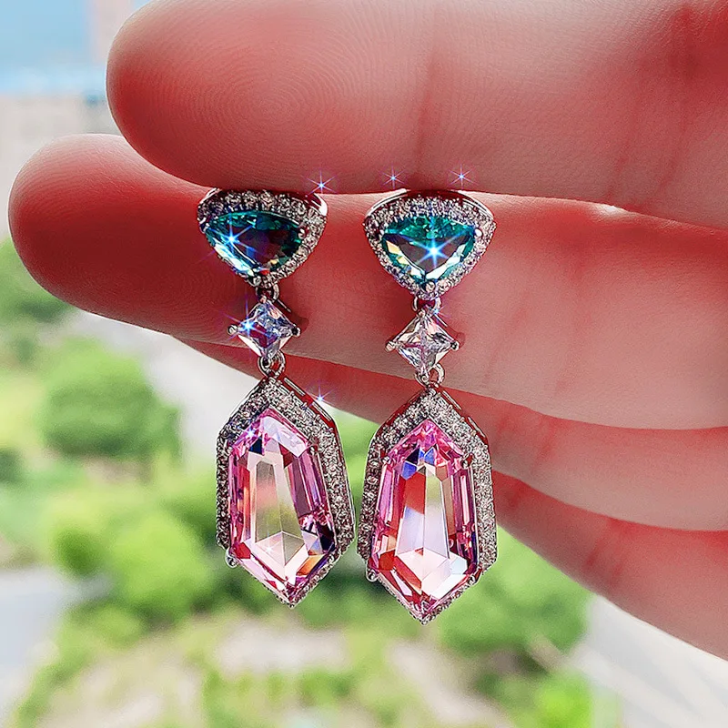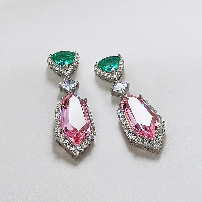 Style up and show off with these glamorous Pink Green Geometry Earrings.