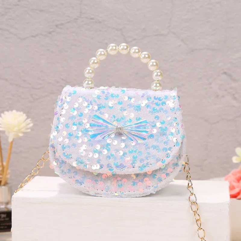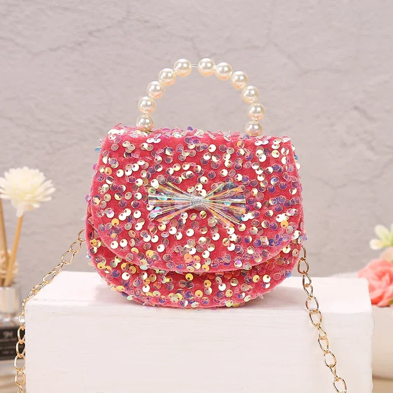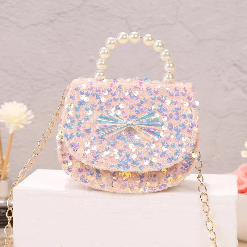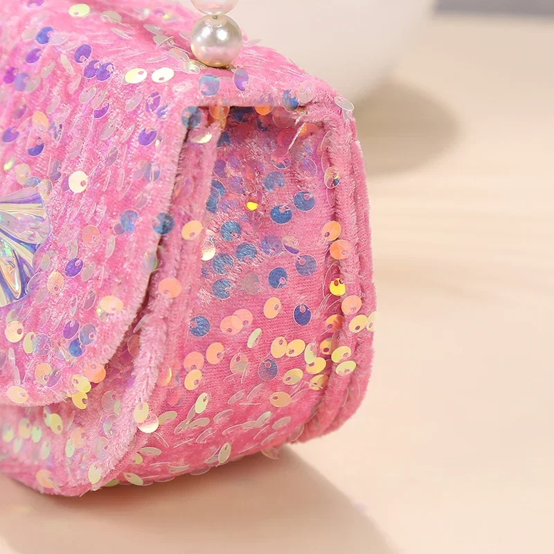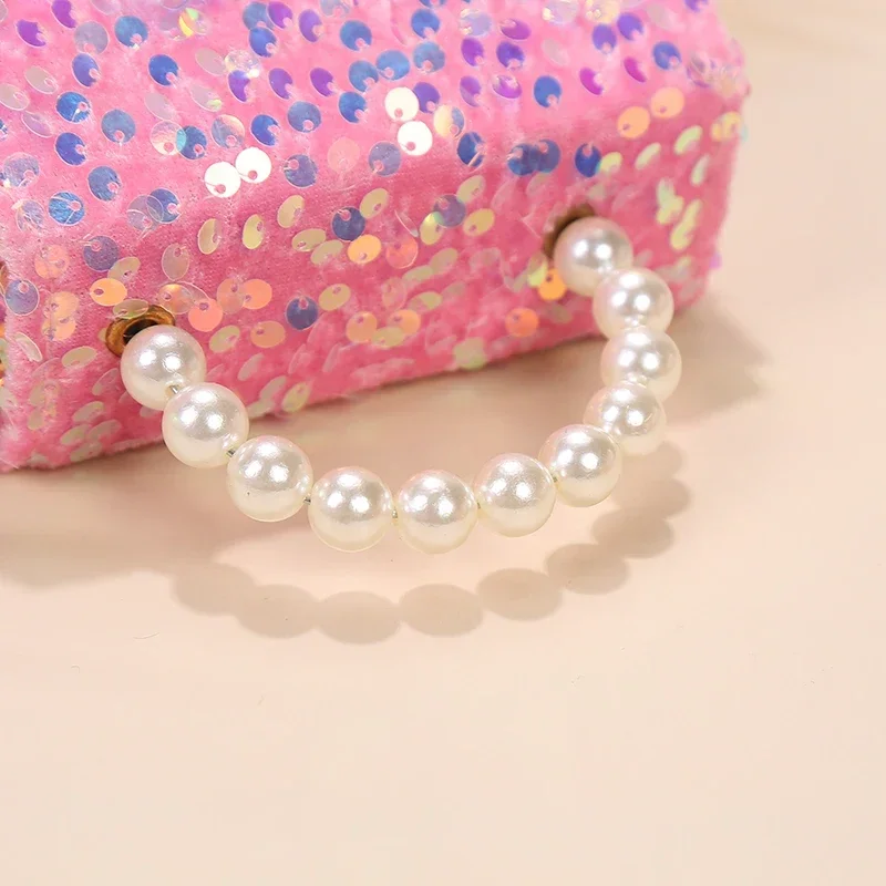The Small Sequin Pearl Bag adds a touch of elegance to your child’s accessories. This charming coin purse sparkles and shines, making it a delightful addition to any outfit. Perfect for carrying small treasures, or tiny essentials, this purse is both practical and stylish. Your child will love the shimmering sequins and pearls, adding a fun and glamorous touch to their collection.