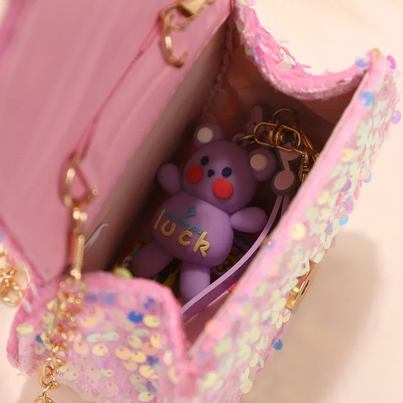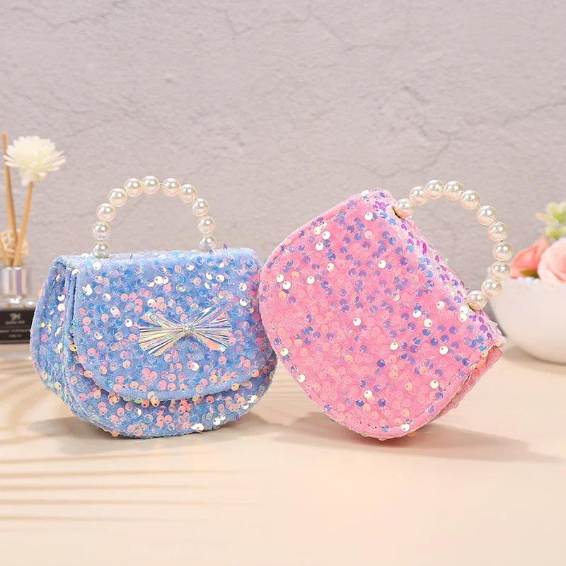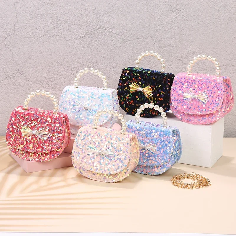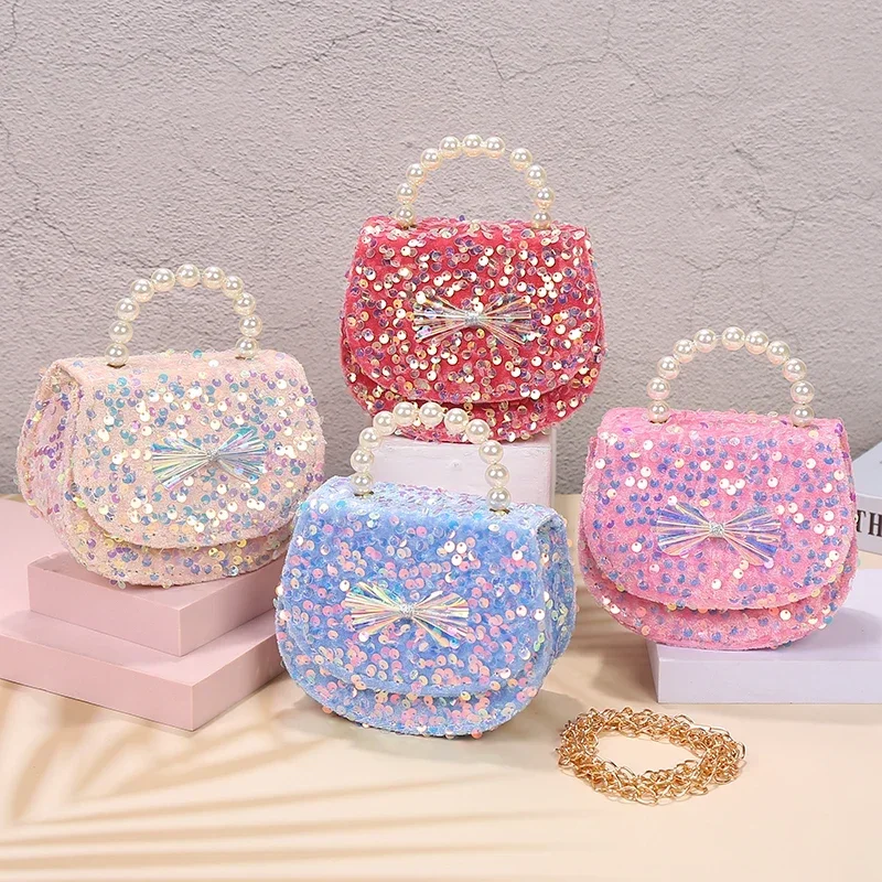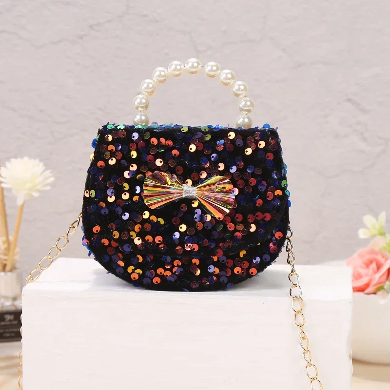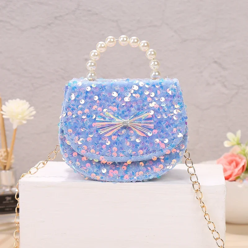 The Small Sequin Pearl Bag adds a touch of elegance to your child’s accessories. This charming coin purse sparkles and shines, making it a delightful addition to any outfit. Perfect for carrying small treasures, or tiny essentials, this purse is both practical and stylish. Your child will love the shimmering sequins and pearls, adding a fun and glamorous touch to their collection.